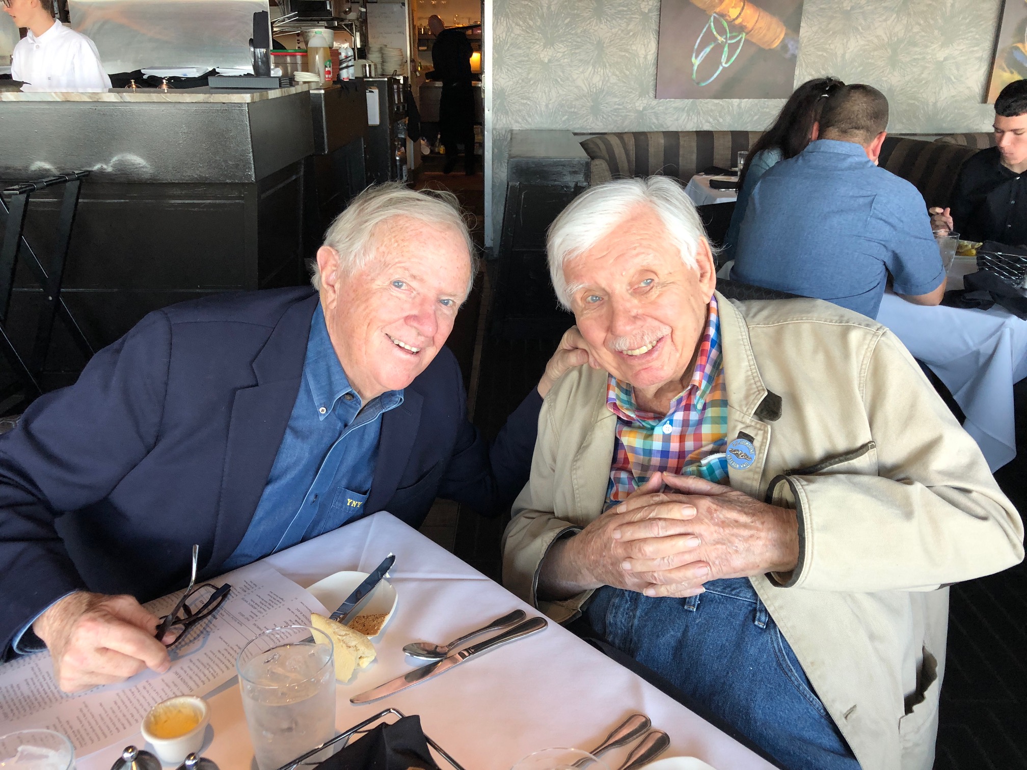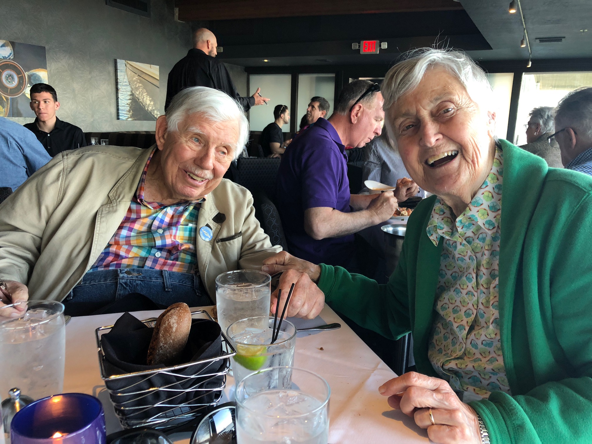 Hilly and I flew down to Florida (a one day round trip for me) to wish her parents a HAPPY 60TH WEDDING ANNIVERSARY last night. Not bad. Ken (see pic) is a particular treat for me. He has long refused to do the YNY stuff and pays a teeny price for it (can barely walk, which is so God-awful.) . BUT he continues to be cognitively himself (at 92) and is lovely, funny company. I learned last night that, as a young man, he had been a hell of a skier…learned in St. Anton, Austria where I learned. If I’d known that 25 years ago, I’d have dragged him back there…carve up the hills. He loved St. Anton, as did I. Then, by heaven, I’d have made him exercise and we’d be out biking together now. Yup.